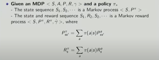 Reward에 대해서 MDP action의 확률을 빼면 MDP -> MRP 가 된다.